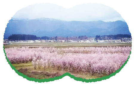 肥沃(ひよく)な土壌、たくさんの太陽の光によって、花びらの大きい立派な啓翁桜(けいおうざくら)が育ちます。